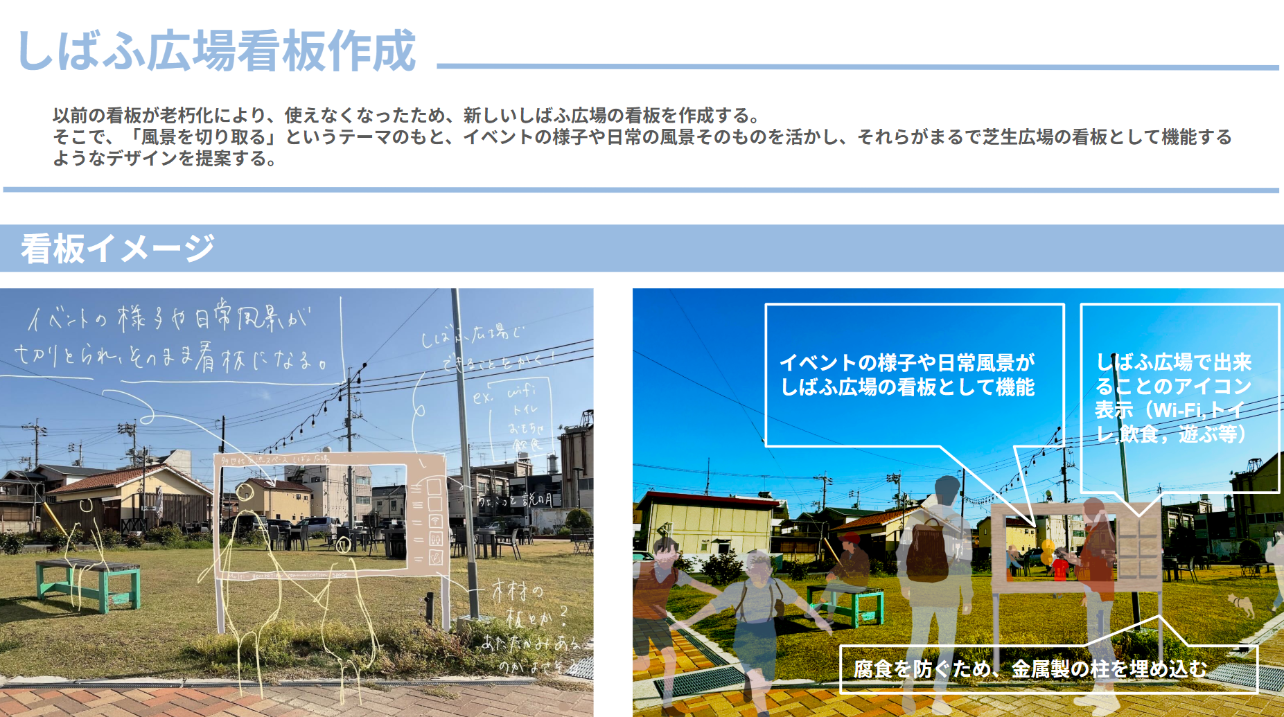 これから広場の使い方が広がっていくのに合わせて、看板も一緒に成長していく仕組みです🛠️