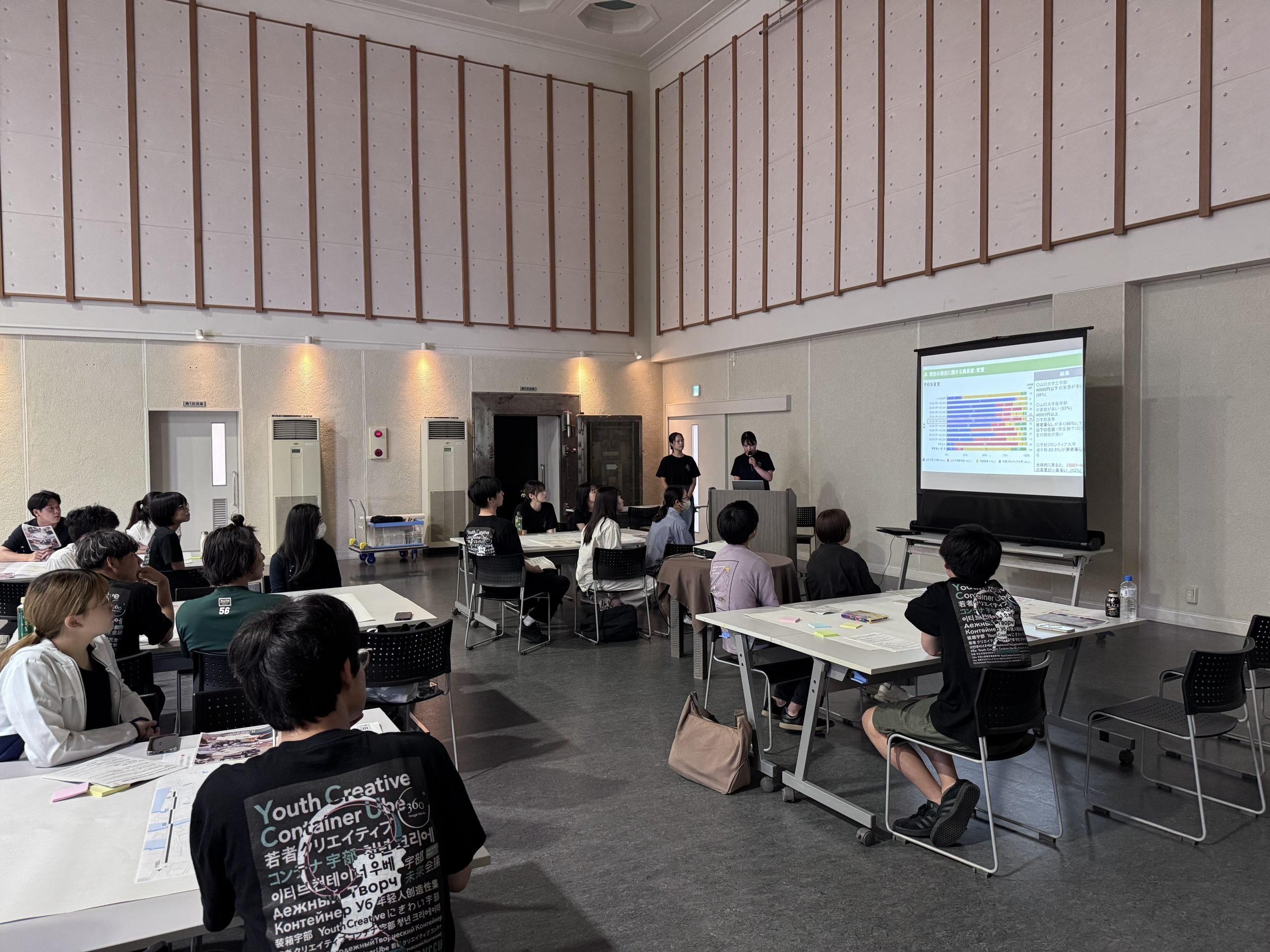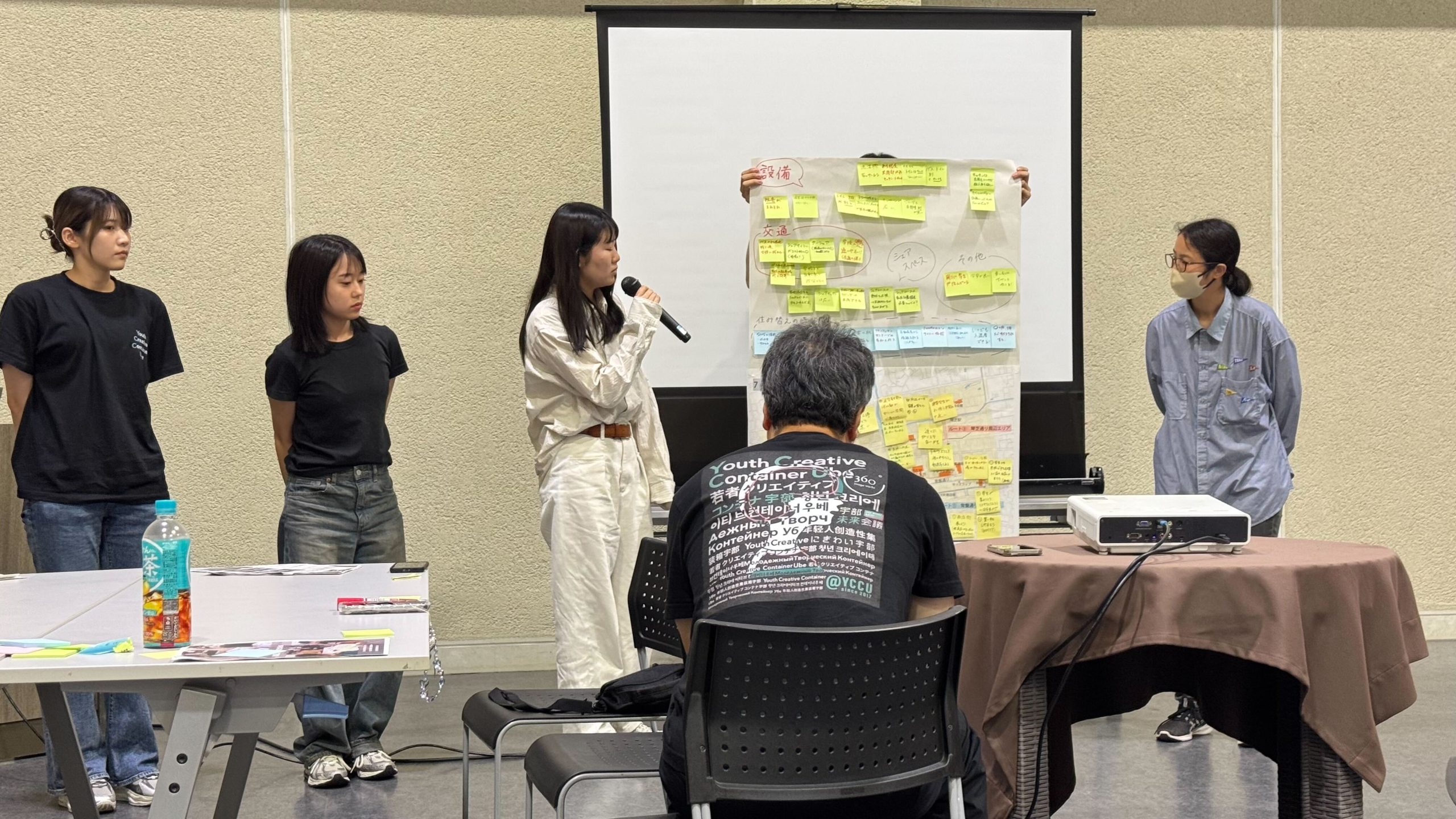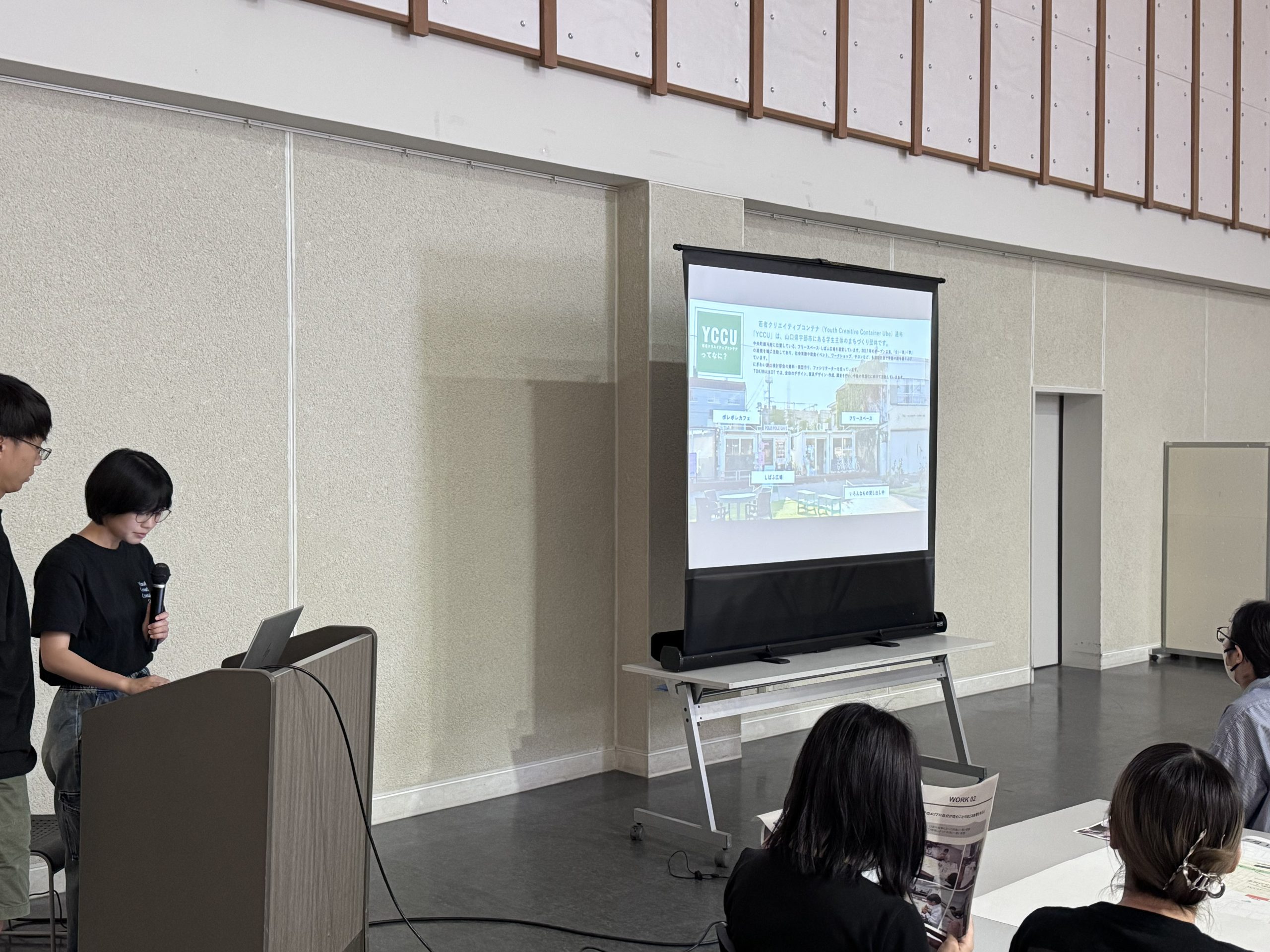第2回では、第1回ワークショップの結果とアンケート集計の報告を行い、続いて宇部市およびYCCUからまちづくり活動に関する取組みの発表をおこないました。